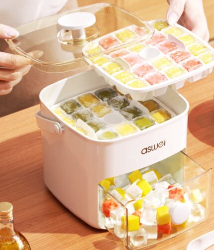 Compact Ice Cube Tray with Lid and Bin